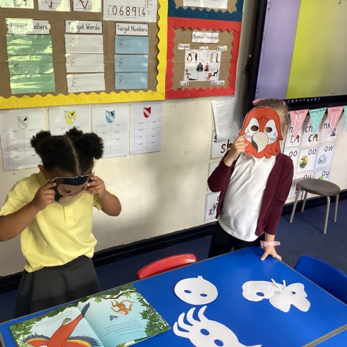 - This week in Year 1 has been filled with exciting activities inspired by the story Monkey Puzzle and jungle themes. We created ‘missing’ posters for animals, built 3D shape models, and made animal masks, enhancing their understanding of shapes and textures. They also explored the butterfly life cycle, examined jungles and green areas on world maps, and drew detailed family portraits. Creative projects included designing snake patterns and building jungle habitats for animals. Additionally, we practised sorting using hoops and jungle animals, and developed fine motor skills through activities involving tweezers, buttons, and bowls, making for a fun and educational week.