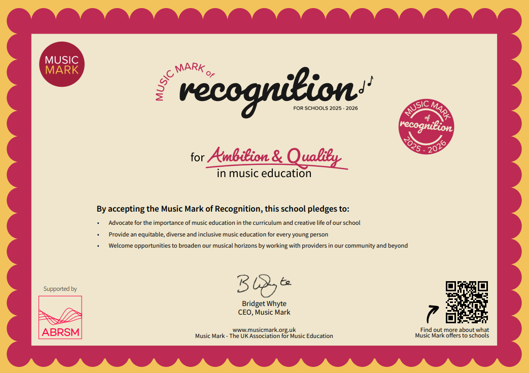 I am also very proud to announce that we were recently awarded a music mark of recognition recognising our positive commitment to music across the school and our ongoing engagement with SIPS Music.