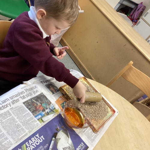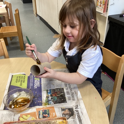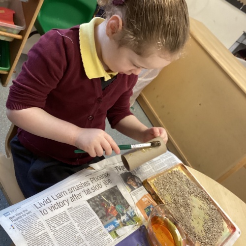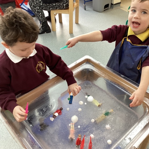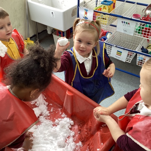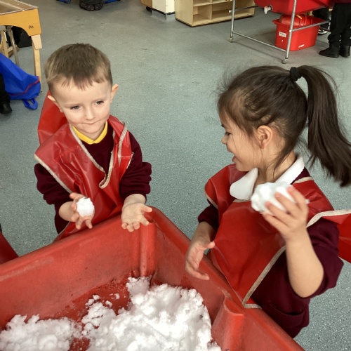 First week back after Christmas and the children have come back very excited and ready to learn. This week our focus text is Winnie Loves Winter. We have been learning about the signs of Winter and how this differs from other seasons. Children have explored snow play using small work characters along with decorating a winter scene using cotton ball, sequins and many other materials. We have been learning about the birds in winter and where they get their food from. We have made bird feeders to hang on the trees in the school grounds during our winter walk. It was lovely to see the children in the real snow making snow angels.