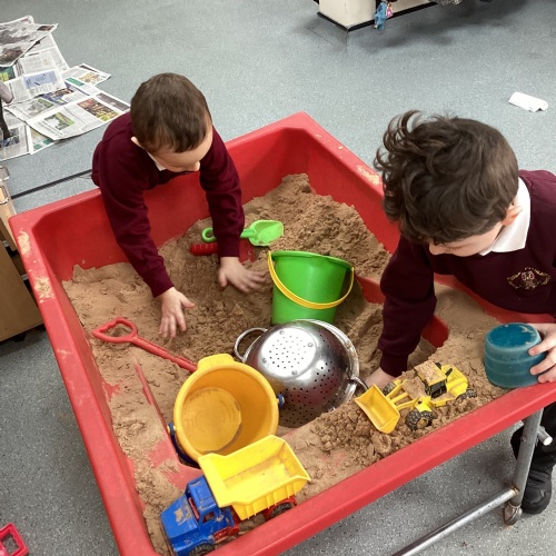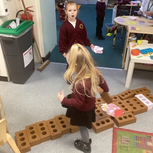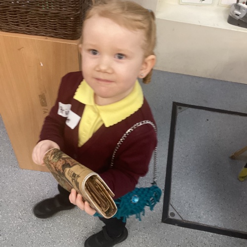 This week we have had a focus of dinosaurs. Our text was Harry and the Bucketful of Dinosaurs which the children engaged with really well and wanted to read the other books within this sequence. During outdoor exploration children went on a dinosaur hunt whereby they were finding hidden dinosaurs and collecting these in their buckets. Also outdoors children took part in a Train Station roleplay. They throughly enjoyed this and even created their own lost and found area. Using the crates they were being very imaginative building their own trains. Some children took the role of the ticket officer and stamped children's tickets to get on the train.
