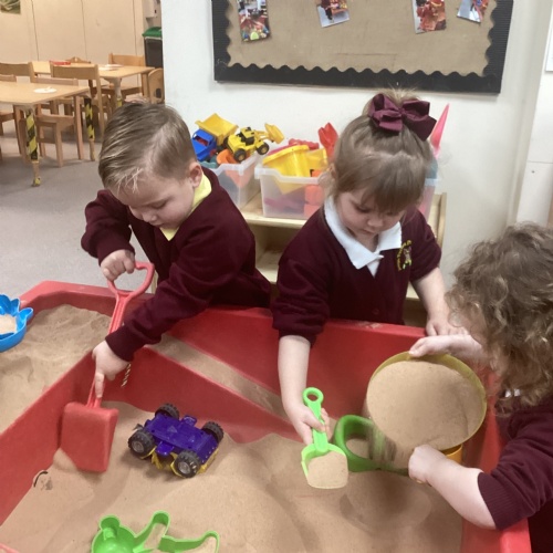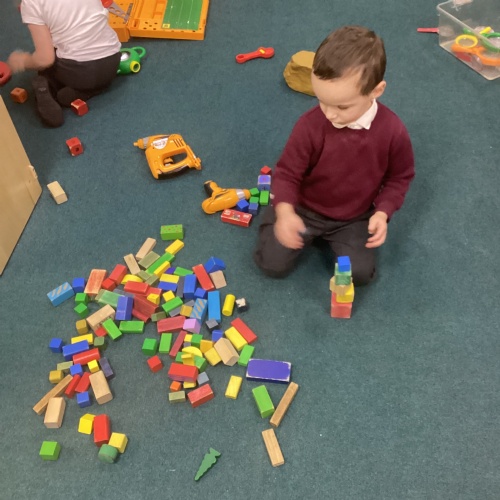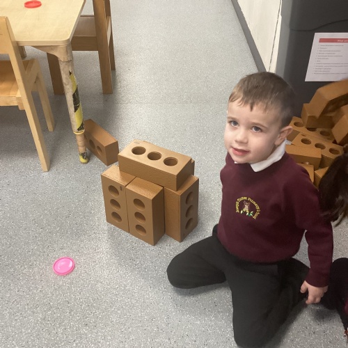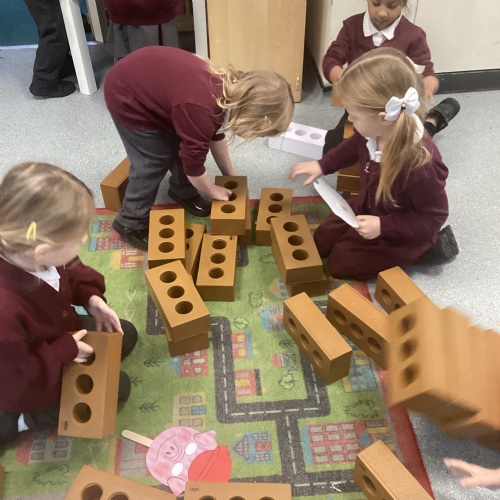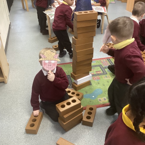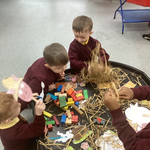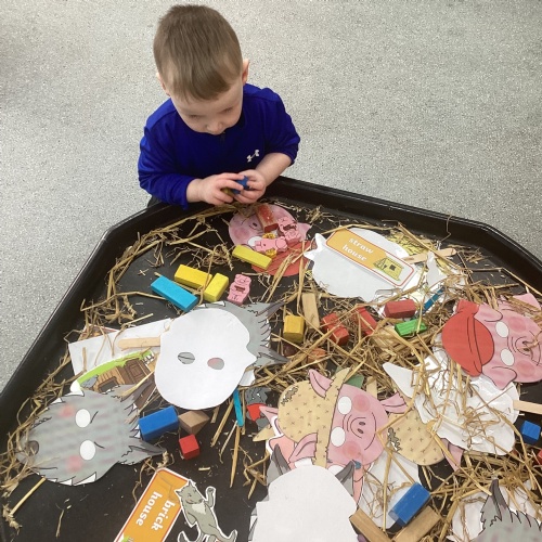 This week have welcomed our new nursery children. The children have been very helpful showing the new starters where things go and navigating them around nursery. This week our linked text has been Three Little Pigs. The children have really enjoyed acting the story out and repeating familiar parts of the story whilst reading it. We have been used junk modelling to build house for the three little pigs using sticks and straw. We have got creative and used different construction materials to see how we could build their houses. During outdoor exploration children have used the crates and beams and worked as a team. We have looked at different materials and discussed why some may be stronger/weaker to build with. In Maths we have continued to look at number 3. Children have completed number hunts using images of 3 items and target splatters of 3 on the outdoor pitch.