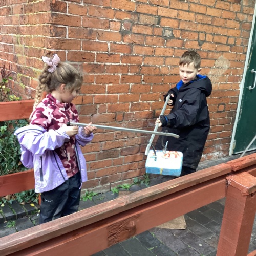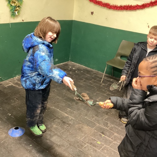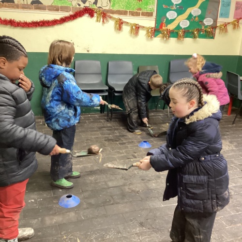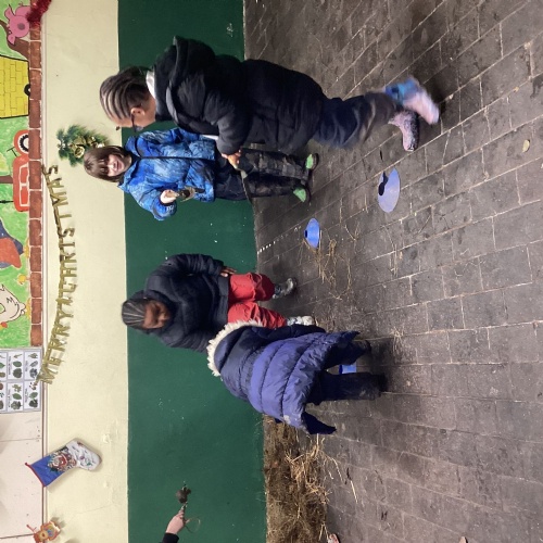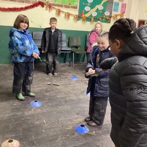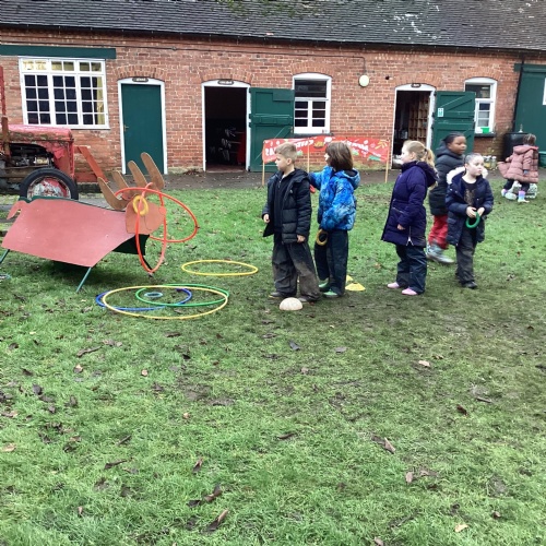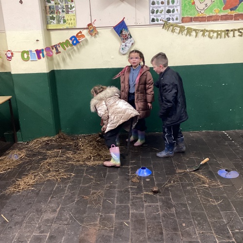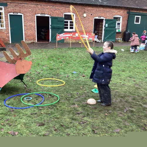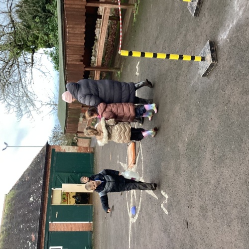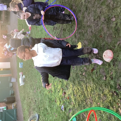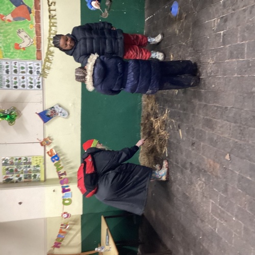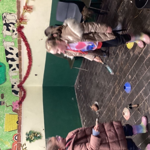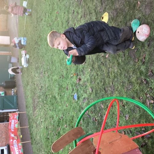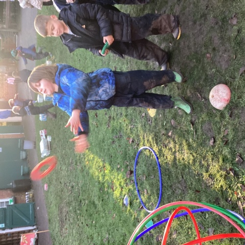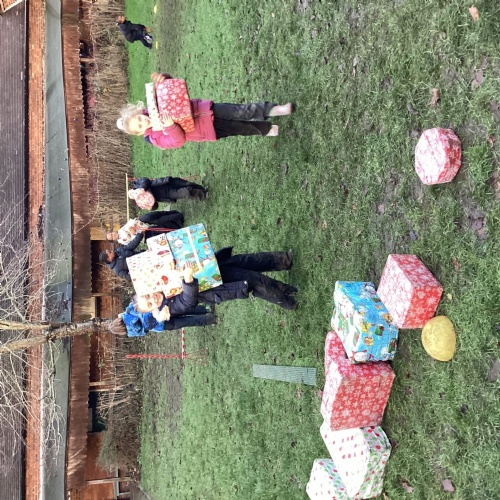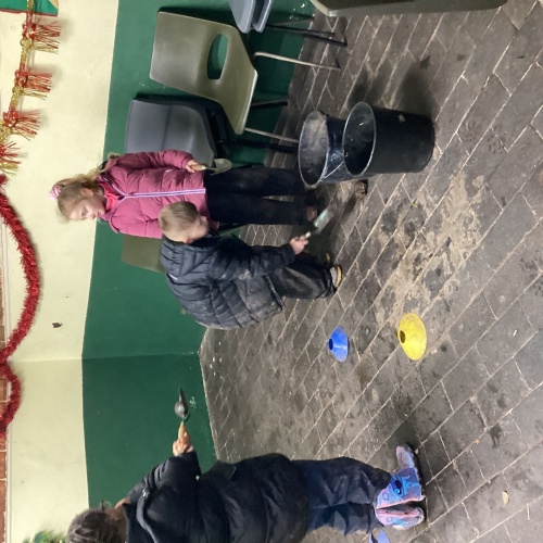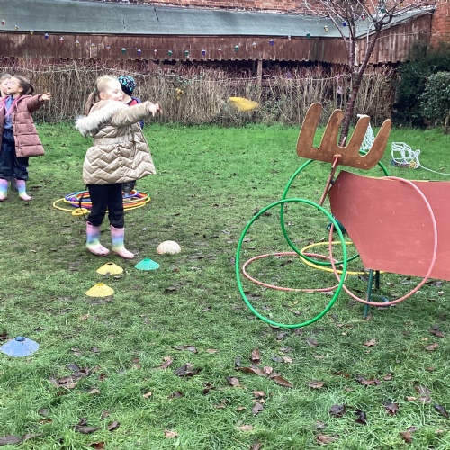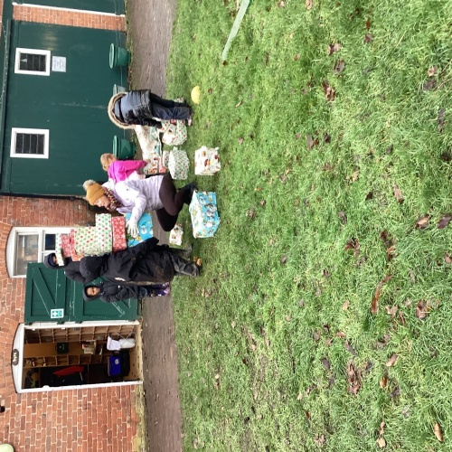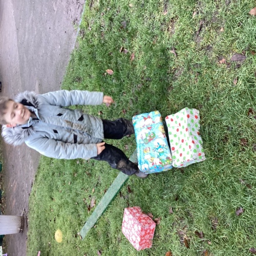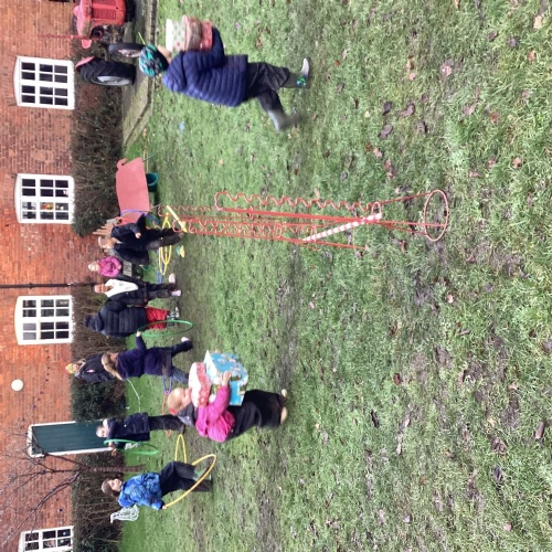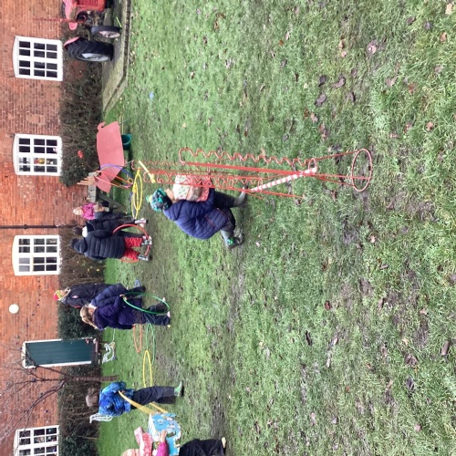 The children took part in a range of festive challenges designed to test their skills. They carried presents over and under obstacles, shovelled reindeer poo, and carefully lowered presents down a chimney using a grabber tool. They also practised hooking hoops around the reindeer’s antlers, throwing snowballs into the snowman’s mouth, and carefully carrying a tray of food and milk around a tricky track without spilling a drop. Everyone showed great teamwork, determination, and festive spirit throughout the activities.